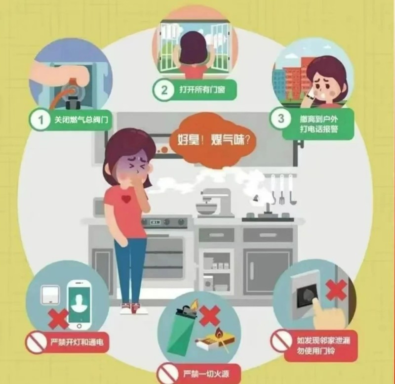 若聞到類似臭雞蛋的氣味,立即關(guān)閉閥門、開窗通風(fēng),撤離至安全地帶撥打 0998-2833626 或119報(bào)警。嚴(yán)禁在漏氣現(xiàn)場(chǎng)開燈、打電話或使用明火。